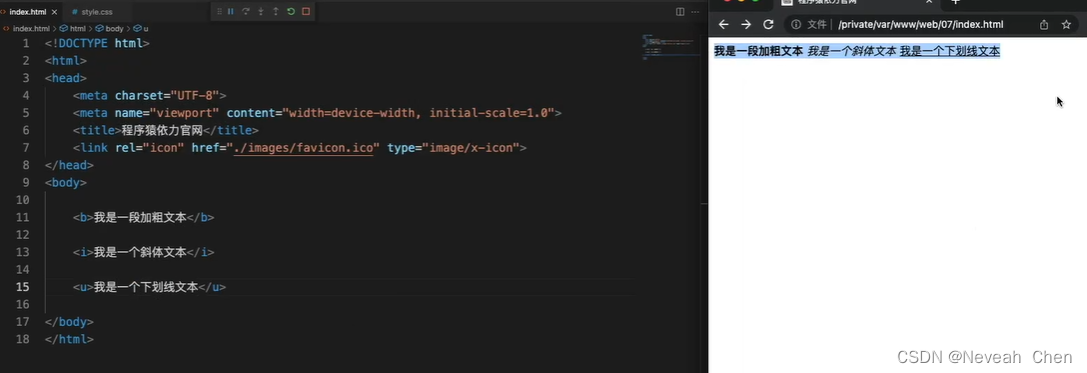 < i > 是视觉要素(presentationl elements),分别表示无意义的加粗,无意义的斜体,仅仅表示样式上是粗体或斜体,而没有强调的语义,这两个标签在HTML4.01中不推荐使用,建议用CSS样式;