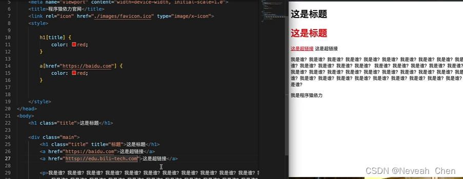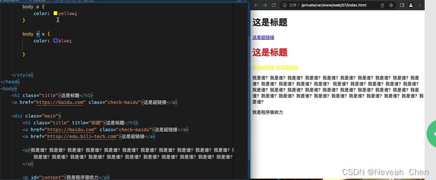 h1+a{}连贯的只有啊、变色