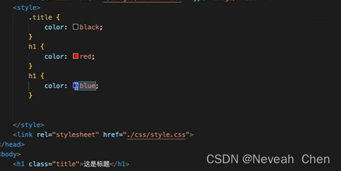 3.style里指定class选择器(会变成黑色,否则按照<style>是就后原则变蓝色)