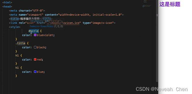 2.style里指定id选择器#title