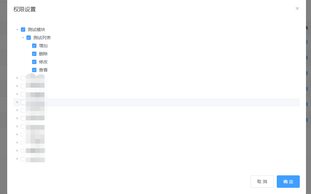 权限设置中的树形菜单结构 id是唯一的。对应动态路由中 meta: { permission: "对应树形菜单中唯一的id" }, 便于后期比对显示动态路由