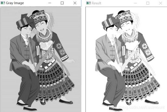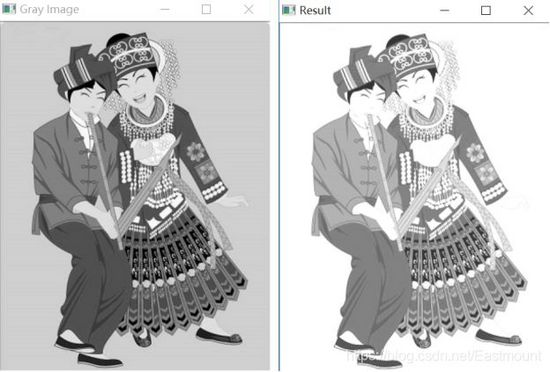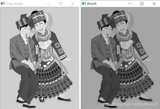 cv2.imshow("Result", result)其输出结果如下图所示,图像的所有灰度值增强1.5倍。