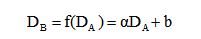 该公式中DB表示灰度线性变换后的灰度值,DA表示变换前输入图像的灰度值,α和b为线性变换方程f(D)的参数,分别表示斜率和截距。