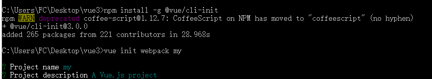 指向的vuecli3是因为上一次记录过的cli3配置,第一次执行create是没有的