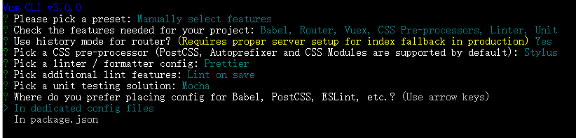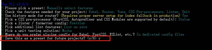 10.询问是否记录这一次的配置,以便下次使用,如一开始的时候会显示的vuecli3配置
