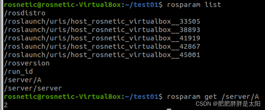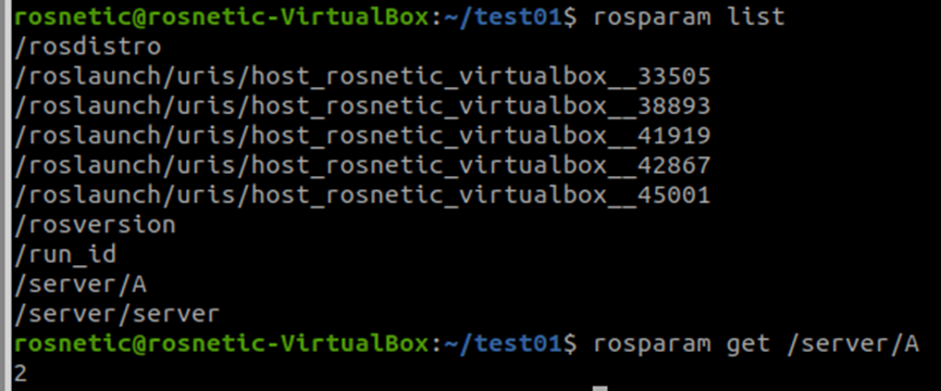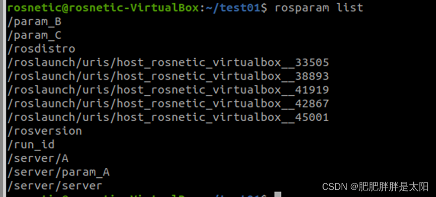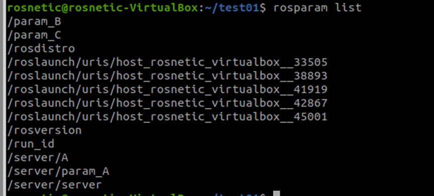 我们从结果中可以看出:参数A有前缀,前缀为节点名称server,因此我们通过rosrun上报给参数服务器的参数的命名空间为私有类型的。