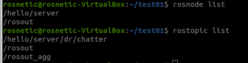 输入命令:rosrun demo04 testServer /server/dr/chatter:="A“