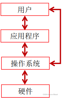 硬件、操作系统、应用程序和用户之间的关系如下图。