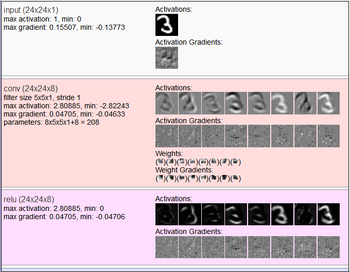 另一个工具是ConvNetJS,它把一些经典数据集(如Mnist和Cifar-10)每层网络的输出可视化出来,对你去理解不同网络做了什么事情有大大的帮助滴!