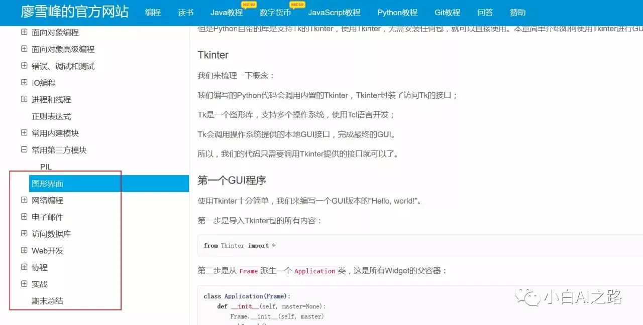 《廖雪峰Python教程》讲得不复杂,比较适合初学者。如果你时间有限,下图红框内部分知识可以先不学习,因为在机器学习领域基本上很少会用到的,当然如果你是个时间充裕又喜欢学习的孩子,那都去学了吧。