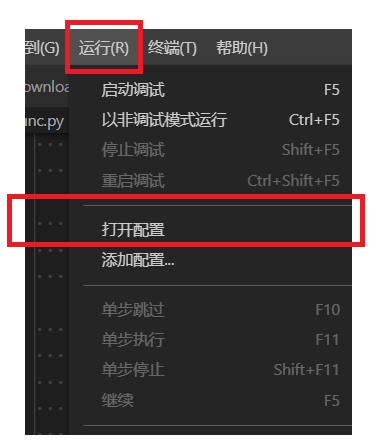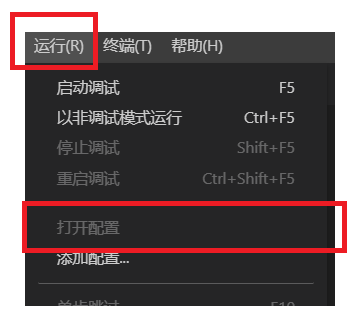1 运行 -> 打开配置(另一个打开配置方式:项目中的 .vscode下的launch.json)