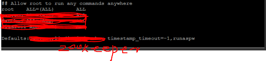 timestamp_timeout=-1 只需验证一次密码,以后系统自动记忆,runasp 需要root密码,如果不加默认是要输入普通账户的密码.
