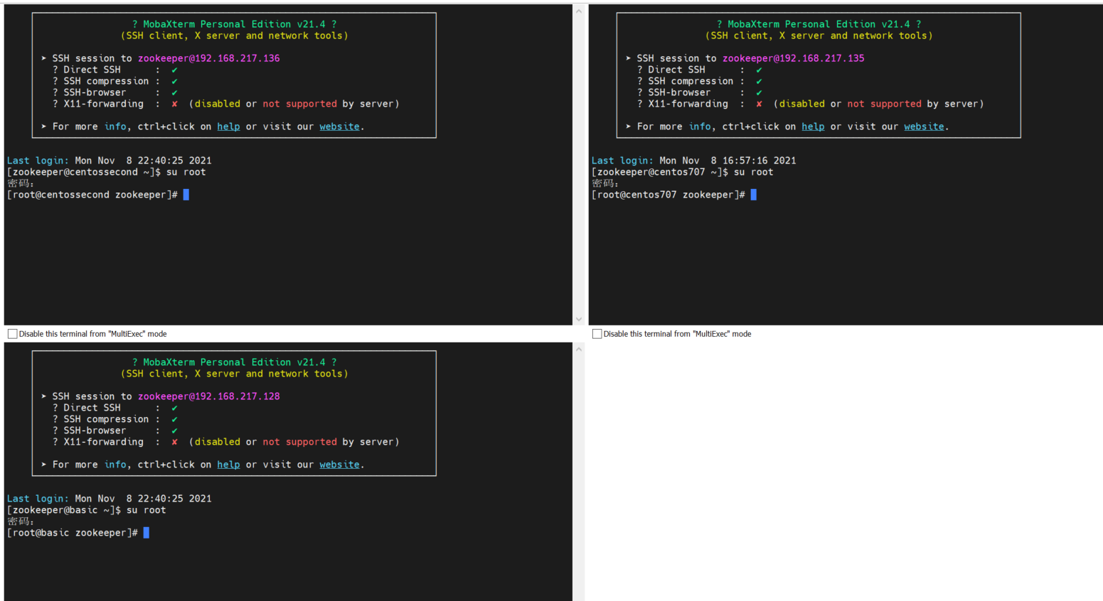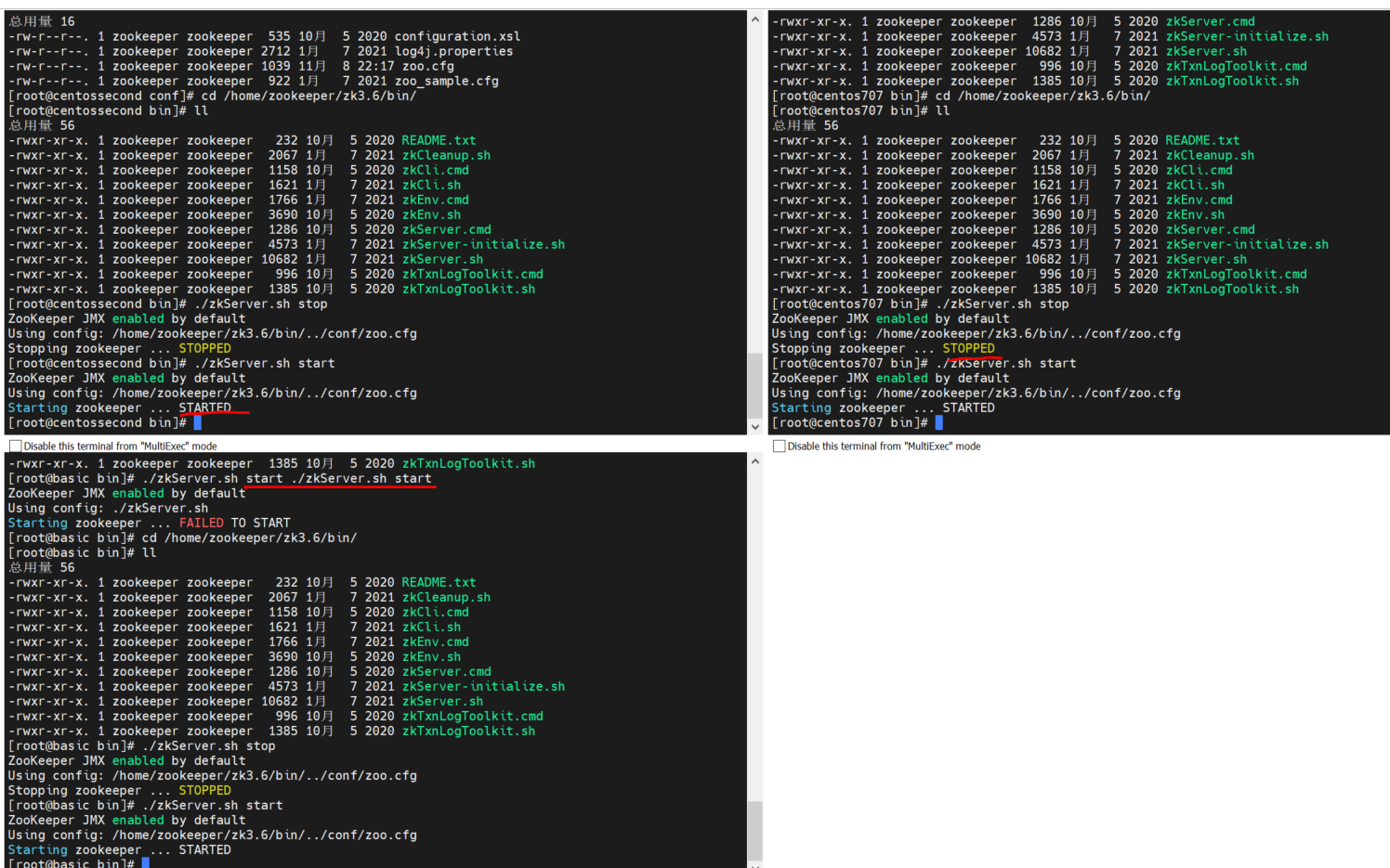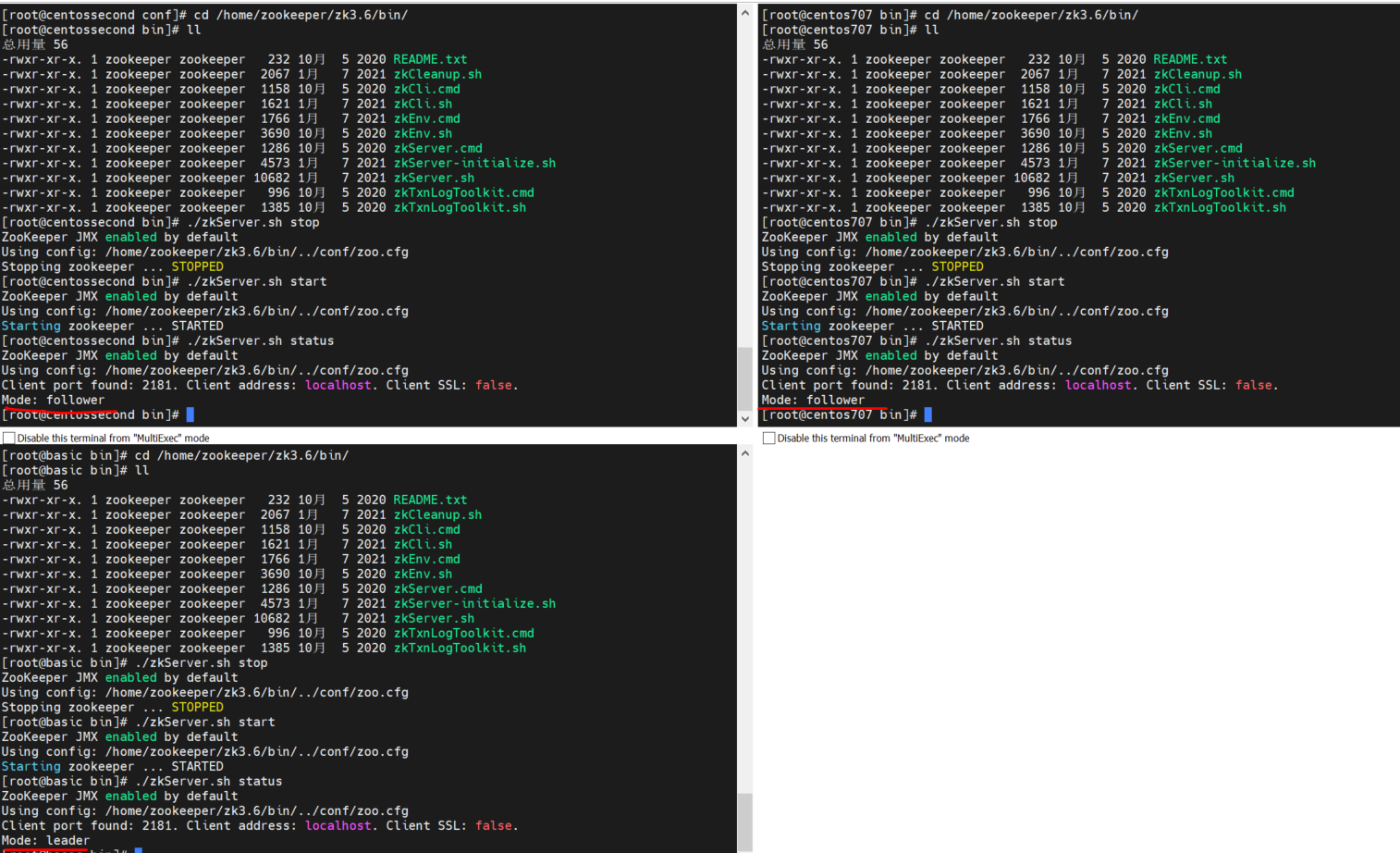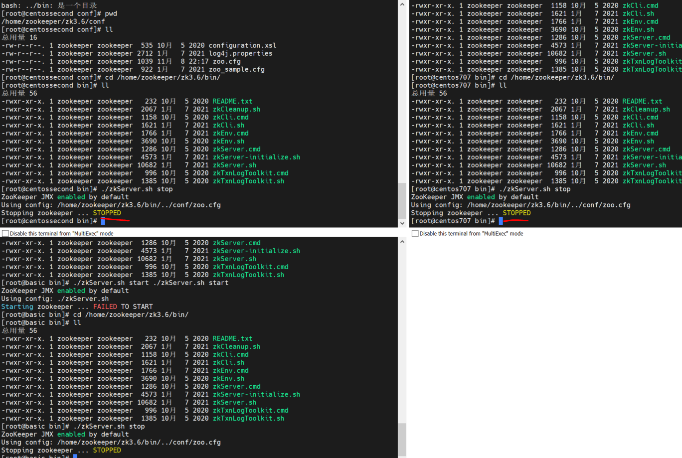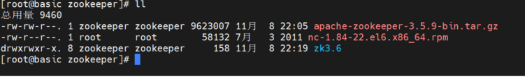 分别上传 zk 的 压缩包 到zookeeper 用户的家目录下 解压 重命名