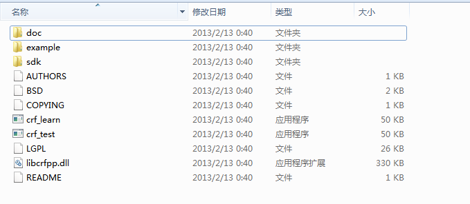 实际上,需要使用的就是crf_learn.exe,crf_test.exe和libcrfpp.dll,这三个文件。