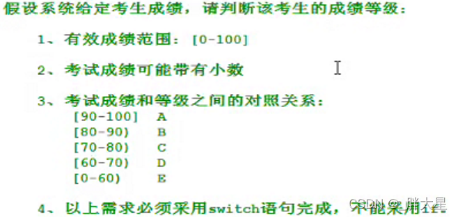 对于这个对照关系,如果用if语句很简单的就可以写出来,但是我们要练习的是switch语句的熟练使用。