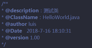 在每个类前面加上类注释,注释内容包括类或接口名,类和接口功能描述,作者,创建日期,所属公司、版本等: