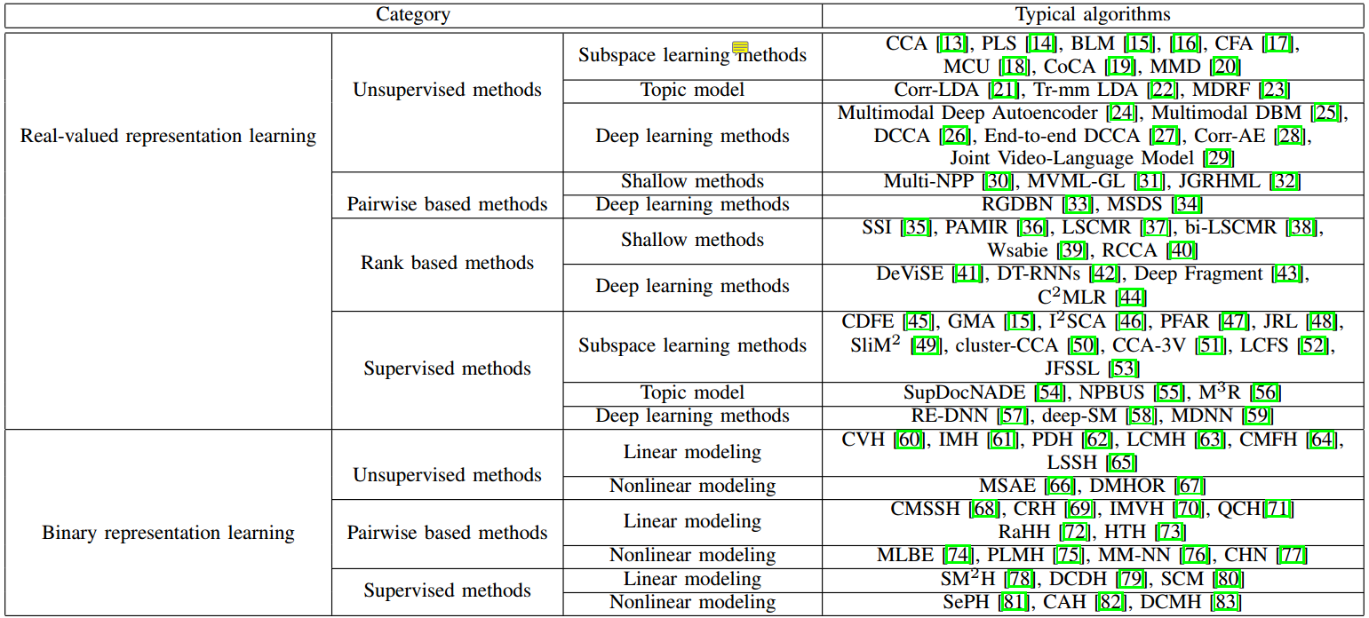 - 对跨模态检索方法进行了分类