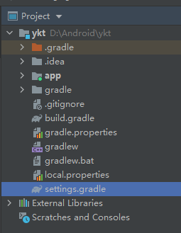 | local.properties | 指定本机中的Android SDK路径,通常内容都是自动生成的,我们并不需要修改。除非你本机中的Android SDK位置发生了变化,那么就将这个文件中的路径改成新的位置即可。 |