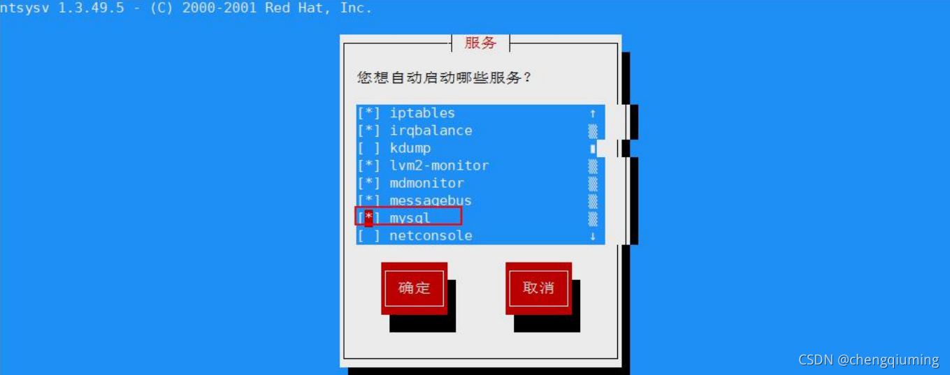 如果要取消开机自启动,则输入命令 ntsysv
