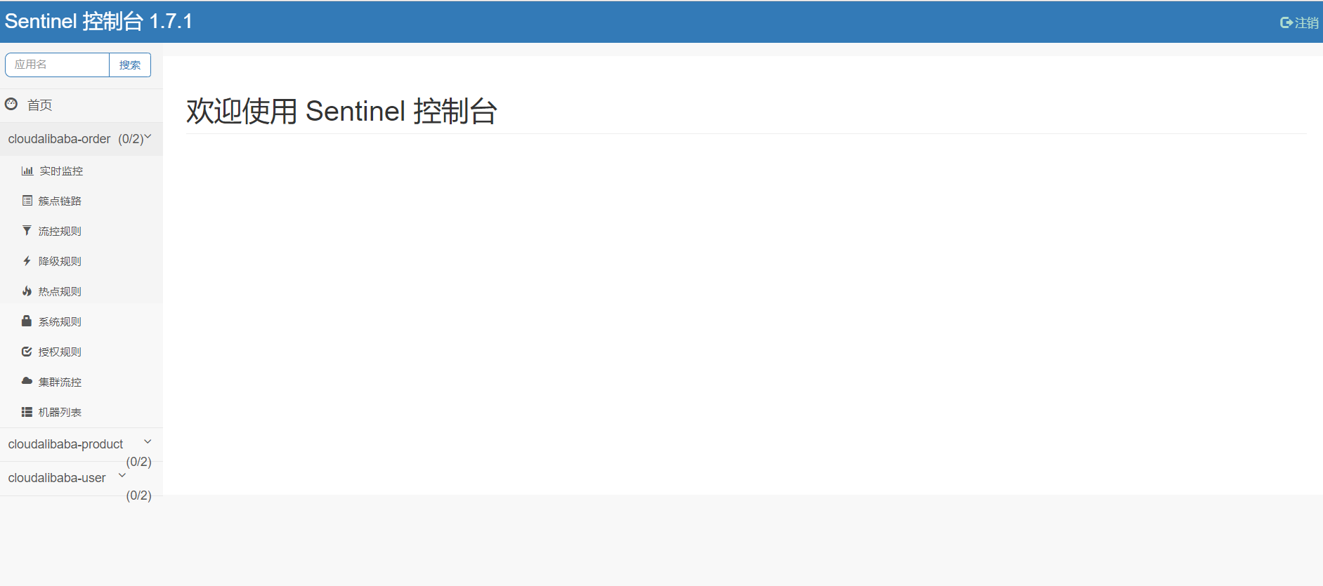 (3).访问 http://192.168.1.7:8080 进入到sentinel管理控制台