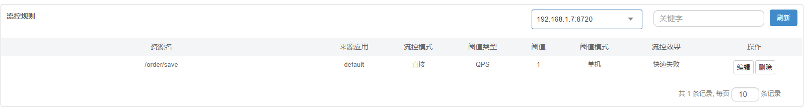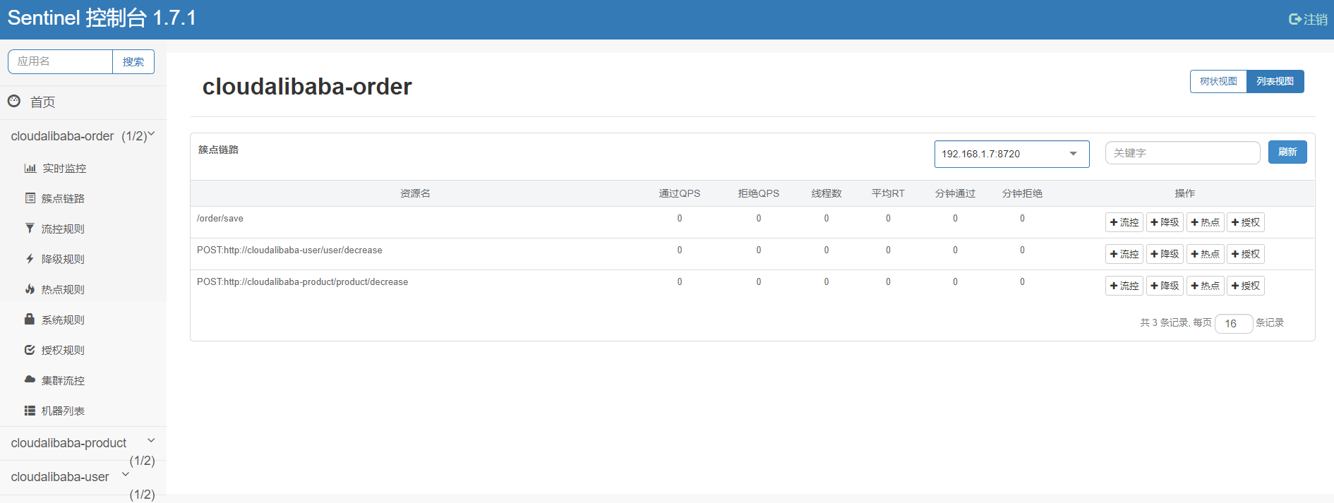 3.访问http://192.168.1.7:8080,打开流控规则,会看到刚才在Nacos里面配置的规则