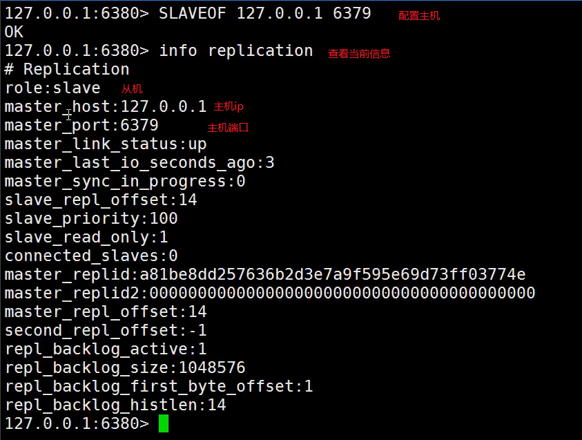 slaveof <masterip> <masterport> #设置地址、端口
