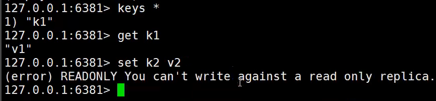 此时主机(6379)执行写入操作后,从机(6380/6381)依旧可以读取到数据