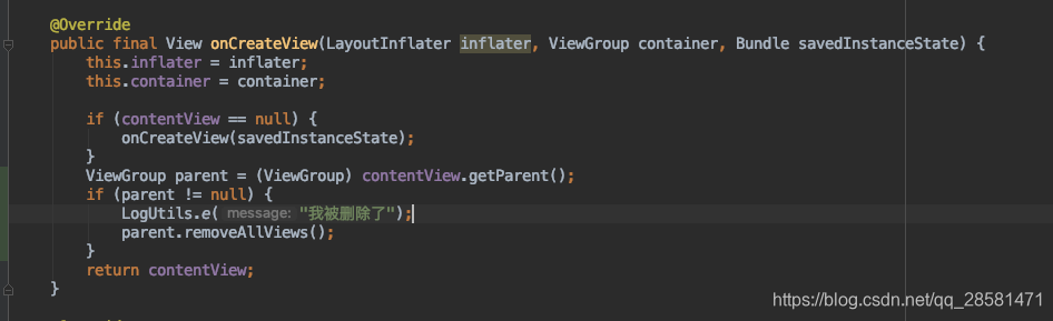 进去一看不要紧,原来它是onCreateView方法的返回值,总算是看到曙光了啊