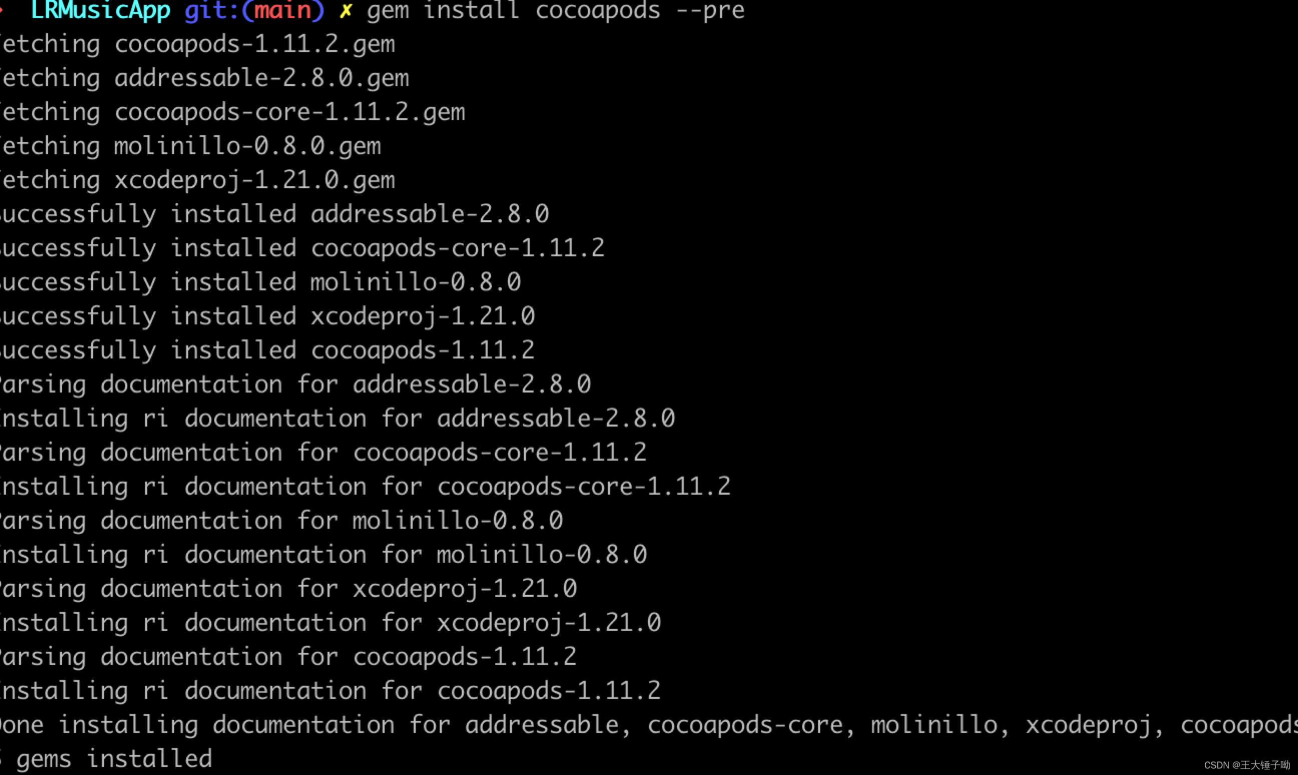 解决方法:终端输入命令 $ gem install cocoapods --pre
