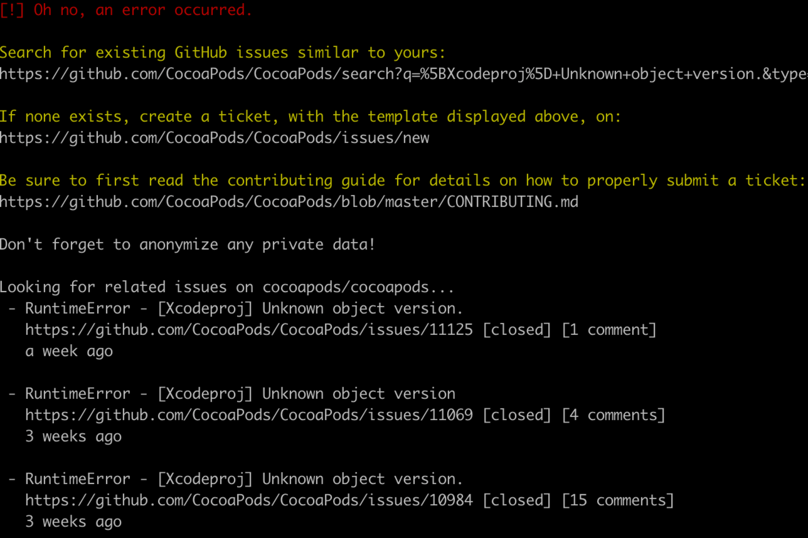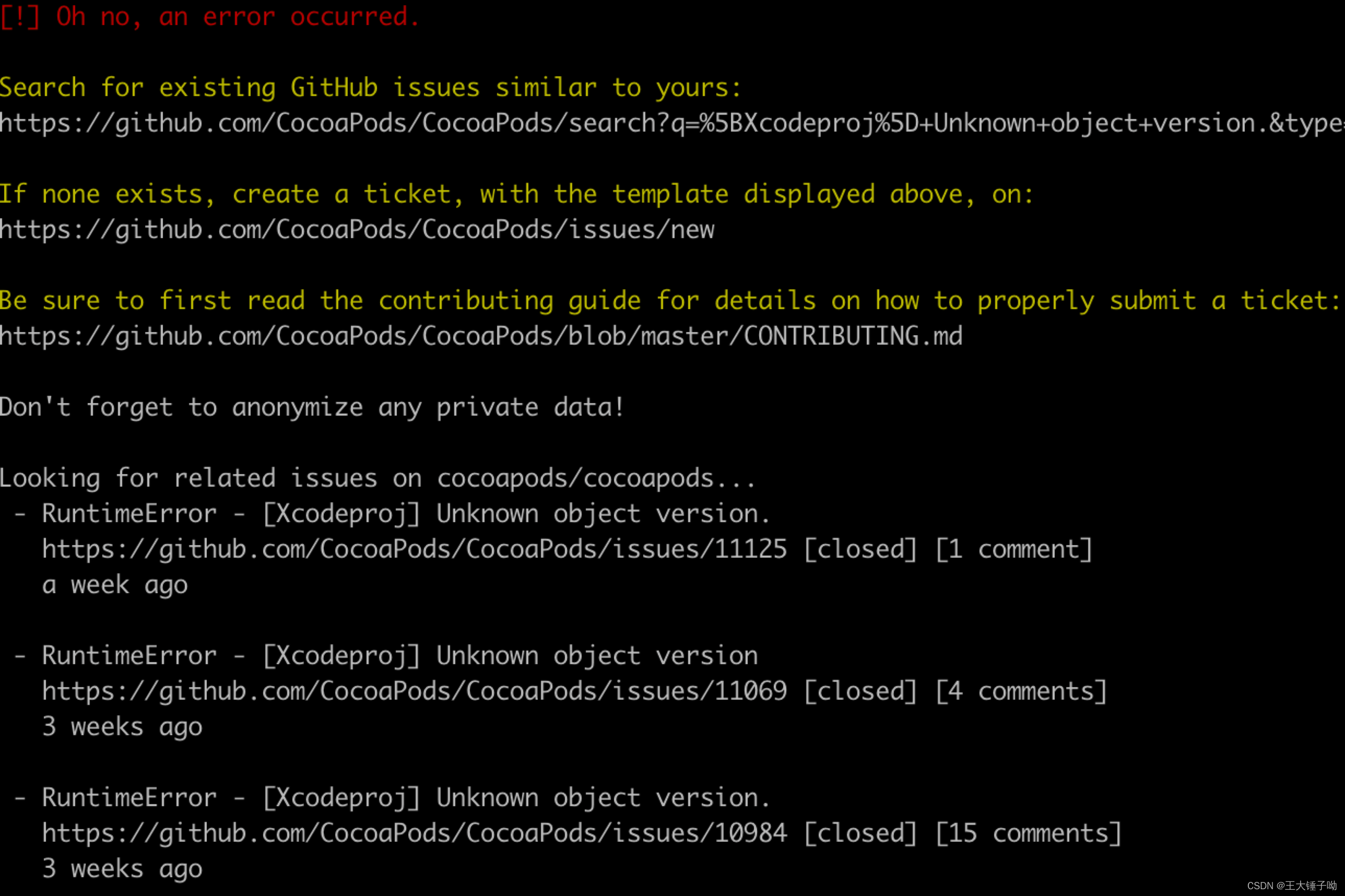 原因:这是因为你的 Xcode 版本和 CocoaPods 的版本不匹配,你需要更新你的 CocoaPods