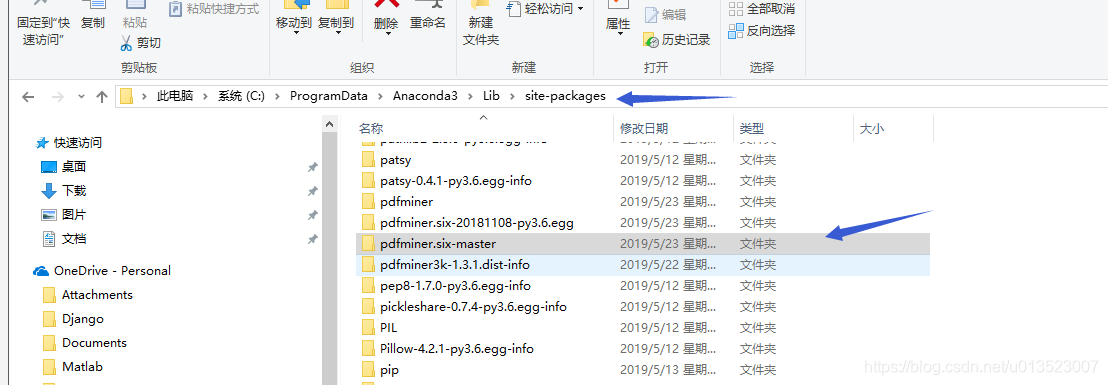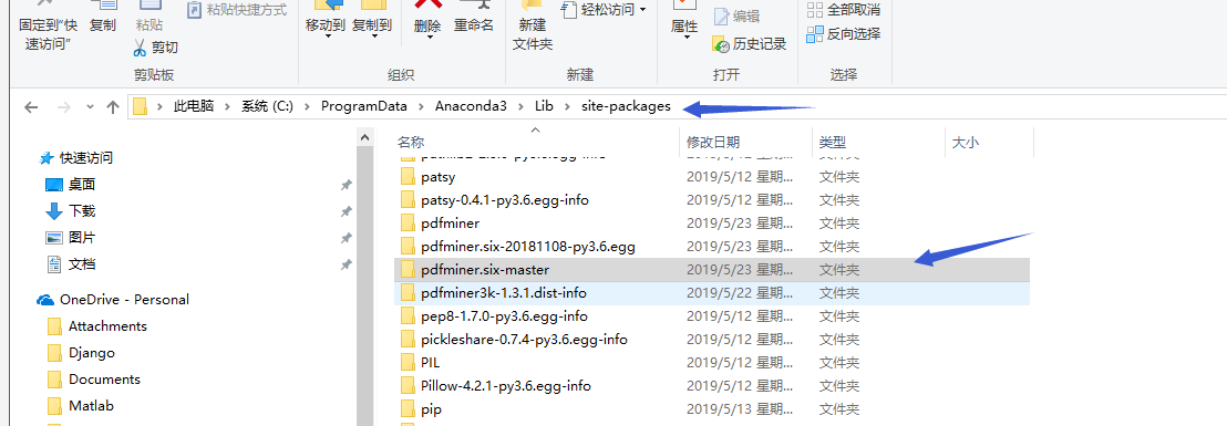 去https://github.com/pdfminer/pdfminer.six 下载回压缩包,解压出来后是一个文件名为‘’pdfminer.six-master‘的文件夹,将文件夹复制到你的anconda安装目录下的\Lib\site-packages文件夹下,参考下图