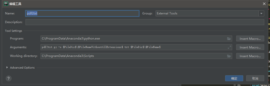 在命令行中cd到Anconda\Scripts目录下后可以使用: python pdf2txt.py -o 文件名.txt 目标pdf的方法来使用。