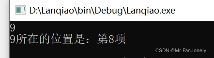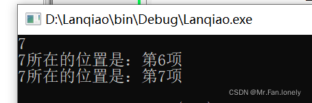 cout<<key<<"所在的位置是:第"<<TwoSearch_left(key,arr,0,sizeof(arr)/sizeof(int)-1)+1<<"项"<<endl;