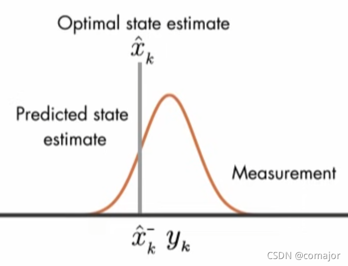 optimal state estimate是把x ^ k \hat x_kx^k和y k y_kyk的估计函数相加得到的,它本身也是一个高斯噪声的形式