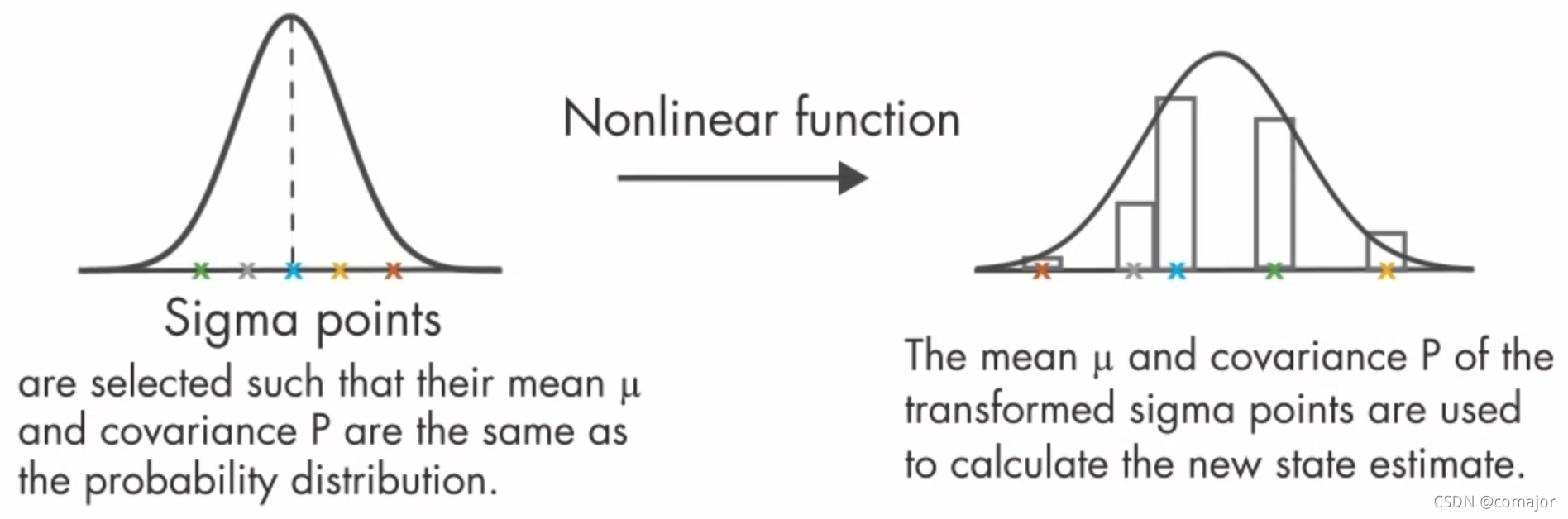 相较于UKF需要假设状态高斯分布,PF可以应用于任意分布,同时也必然需要采集更多的采样点