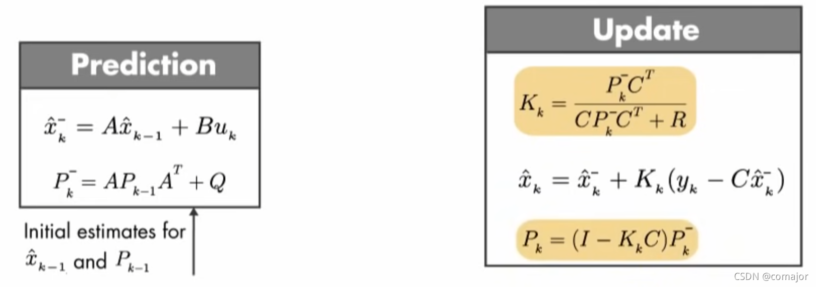 这样方程式可以重写为: x ^ k = x ^ k − ⏟ p r e d i c t + K k ( y k − C x k − ) ⏟ u p d a t e \hat x_k=\underbrace{\hat x_{k}^-}_{predict}+\underbrace{K_k(y_k-Cx_{k}^-)}_{update}x^k=predictx^k−+updateKk(yk−Cxk−)