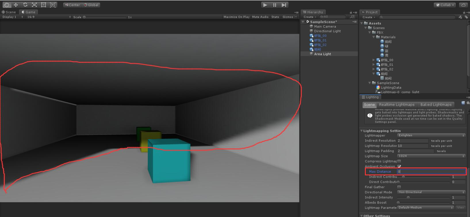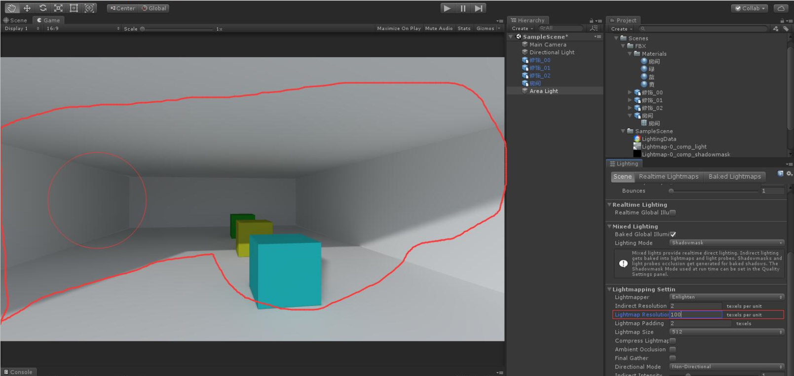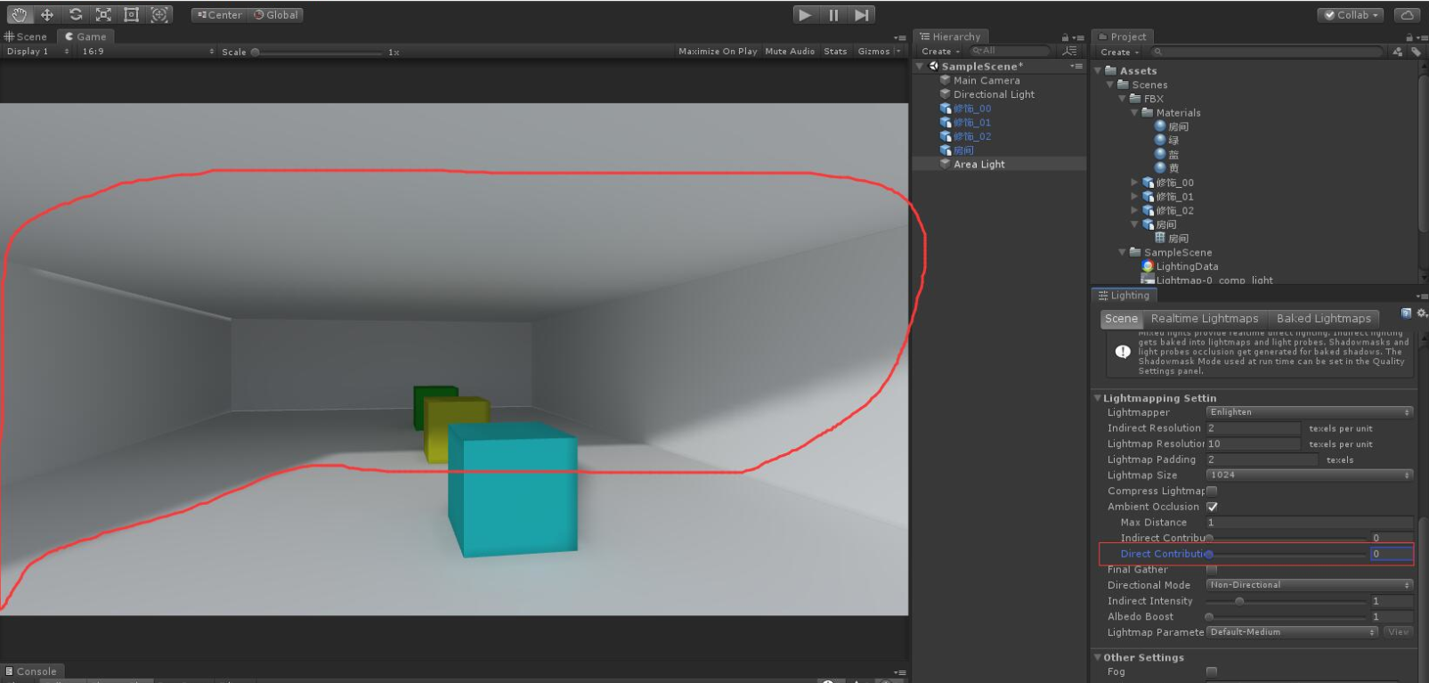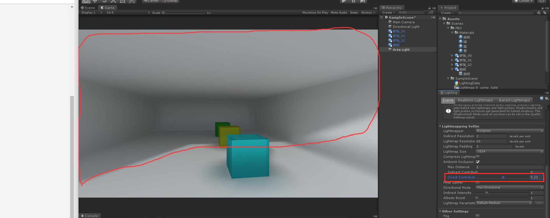Indirect Resolution(间接分辨率)的值最好不要太大,我一般就0.2-0.6,值越大,烘焙时间越长,默认是2,如果确实需要大参数,而且场景大的话,晚上下班再烘吧
