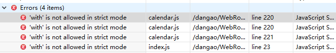 关于with关键字,他是将其代码的作用于限定在一定范围内,而在js的严格模式下是不允许使用该关键字的,原因在于其性能即语义问题,这一点网上有详细说明~~