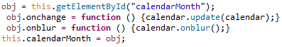 这里的onchange及onblur都是对象obj的属性,这样写方便调用同一对象的多个属性,但也降低了代码的优化性能,解决方式为去掉with关键字并将其后代码进行简单改写: