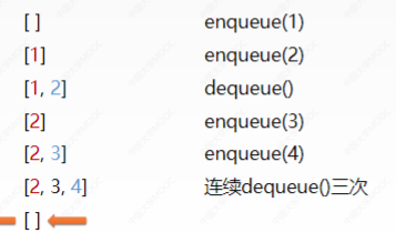 •出队(dequeue):移出队首元素,下一个元素成为新队首/或队列变为空
