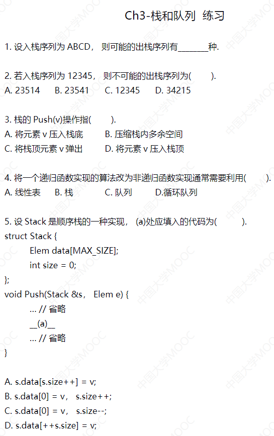 1.设Stack是顺序栈的一种实现,在(a)处应填入的代码为:___________.(stk.size--)