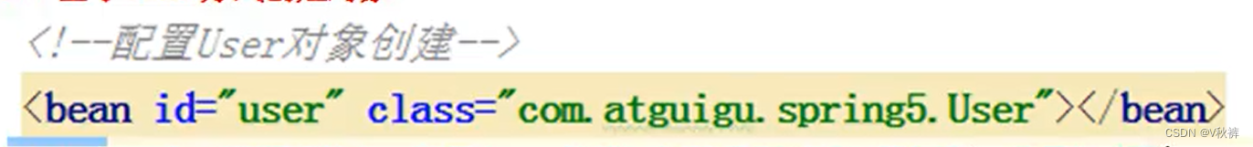 (1)在Spring 配置文件中,使用Bean标签,标签里添加对应的属性,就可以实现对象的创建
