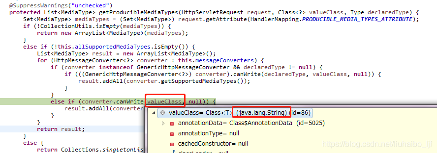 这个方法方法中会通过canWrite方法来选择可以处理这个类型的converter,这里的valueClass就是返回值hello的类型。