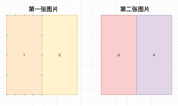 将图片左右切割为两部分,两张图片共分割为4个新的组件,如下图,分别为1、2、3、4