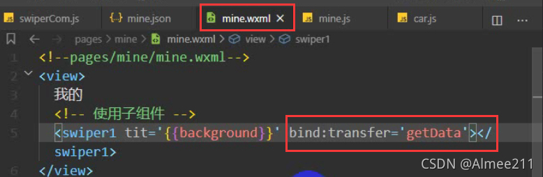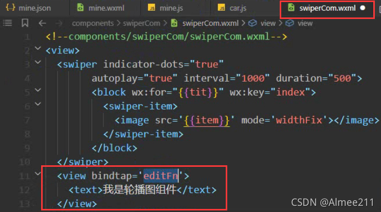 <view id="abc" data-abc="abc">点我触发事件</view>