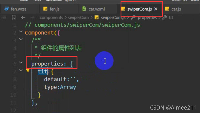 组件对应的js文件中写入属性值