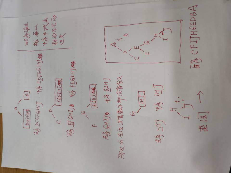 去掉次根D,左树为C右树先序为EFGHIJ,中序为FEGIHJ可得E为次次根,再看中序得 F E GIHJ;