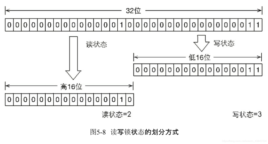 如果我们有看过线程池的源码,我们知道线程池的状态和线程数是通过一个int类型原子变量(高3位保存运行状态,低29位保存线程数)来控制的。同样的ReentrantReadWriteLock也是通过一个state的高16位和低16位来分别控制读的状态和写状态。