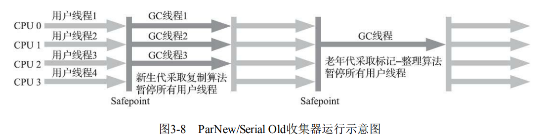 ParNew收集器实质上是Serial收集器的多线程并行版本。