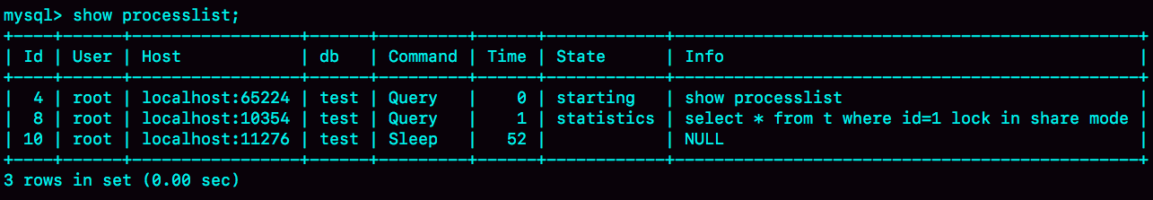 1.通过show processlist命令查看执行中的语句的状态